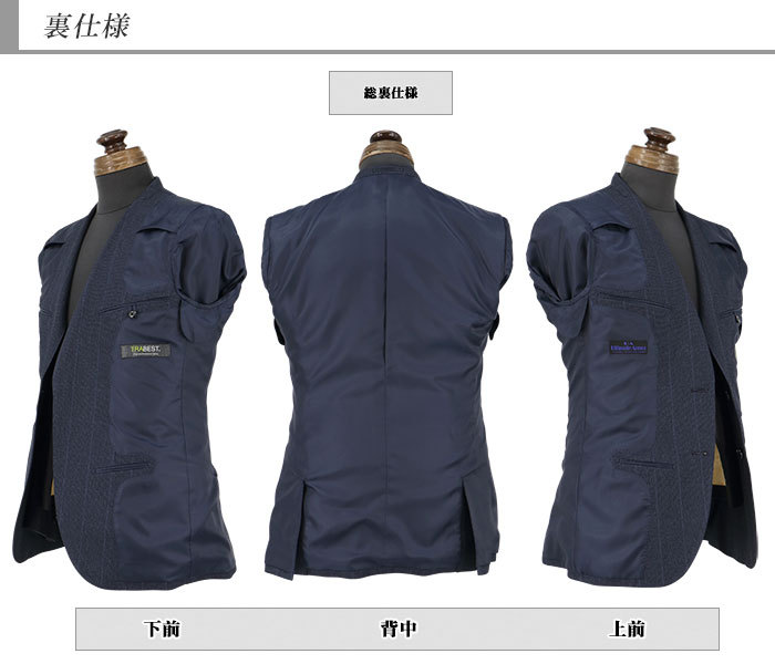 衿は、レギュラーラペルのAMFステッチ入り