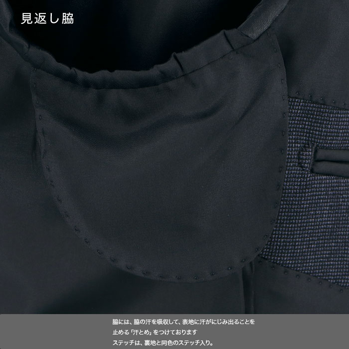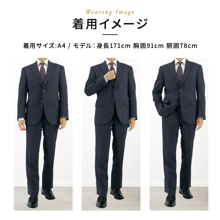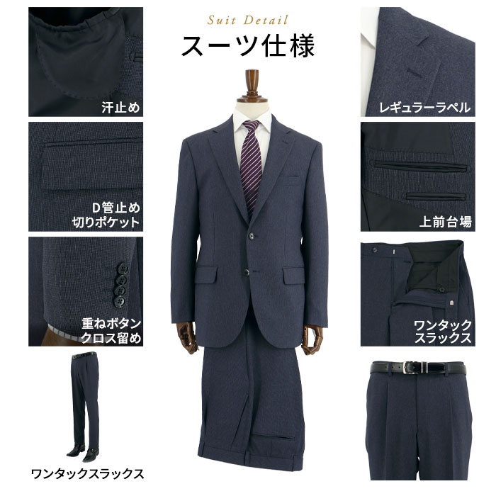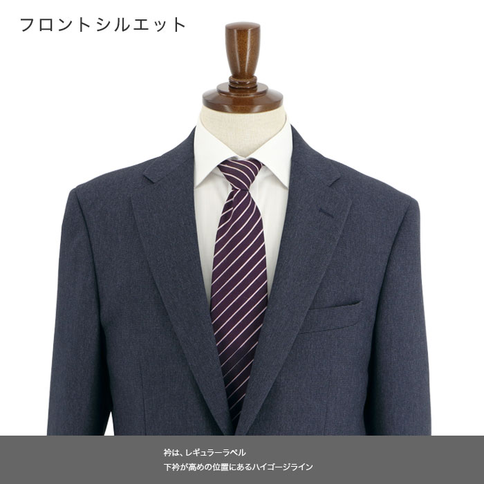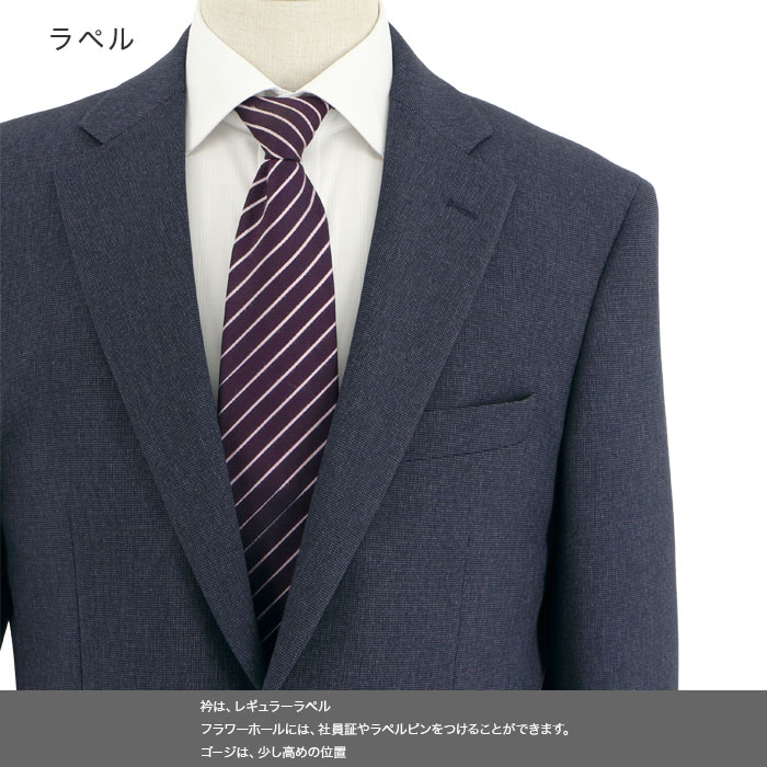 濃ブルーの知的な色合いと、きちんとした印象を与えるレギュラーフィットが、面接やリクルート活動に最適です。