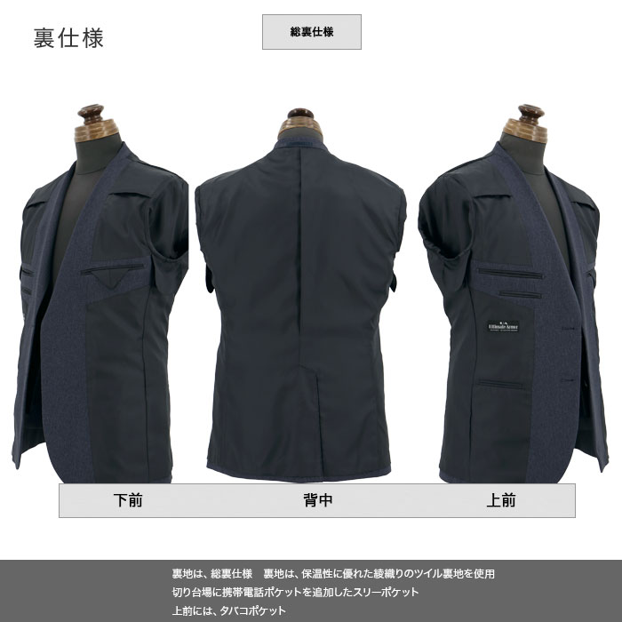 滑りが良く着脱しやすい、総裏仕様の裏地を採用。保温性にも優れ、秋冬春シーズンを快適に過ごせます。